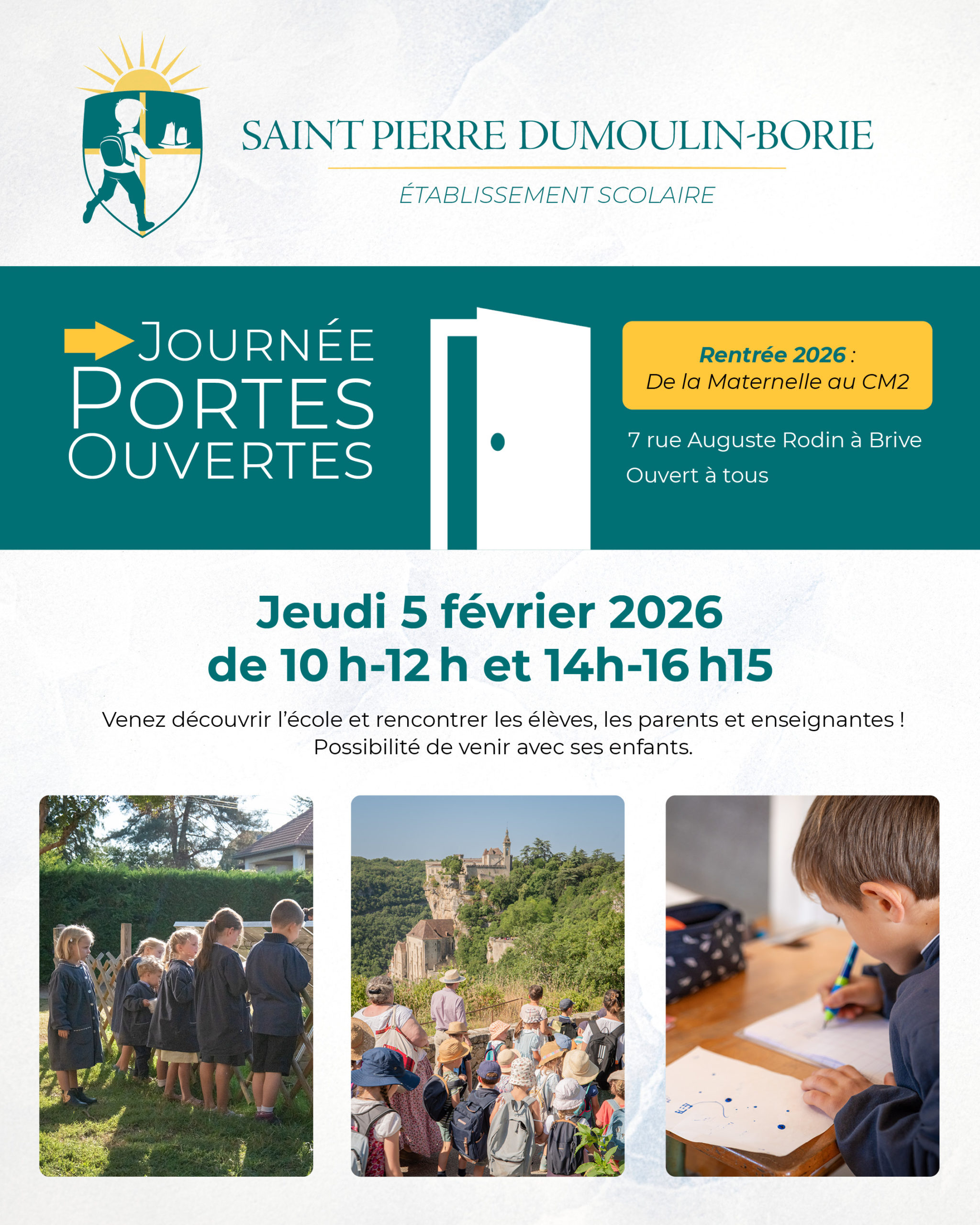 L’établissement Saint-Pierre Dumoulin-Borie est un établissement scolaire catholique, indépendant, implanté à Brive-la-Gaillarde (Corrèze). Nous avons a fait le choix d’être un établissement libre, dans l’objectif de donner un enseignement et une formation chrétienne solides pour éveiller le cœur et l’intelligence à la lumière de la foi catholique.